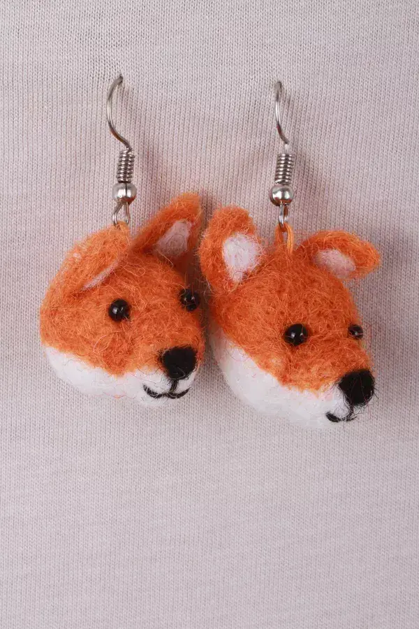 FoxEarrings – Scottish cow design, 100% wool, fair trade and handmade in Nepal.