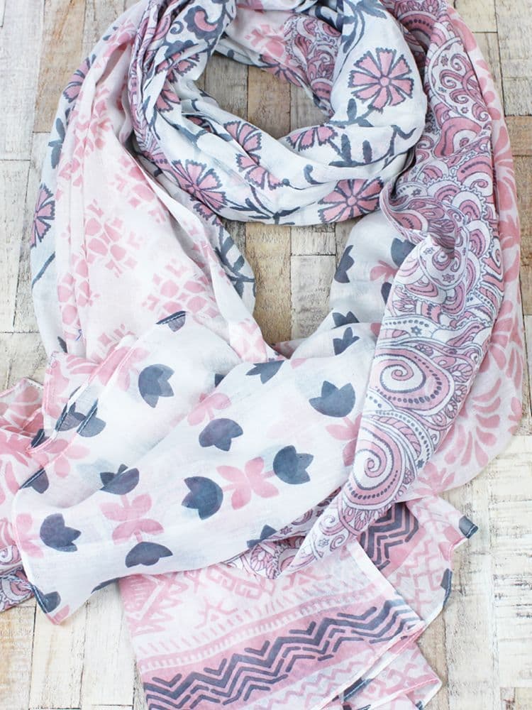 Hand Printed 100% Cotton Sarong /Scarf Pink Tulip
