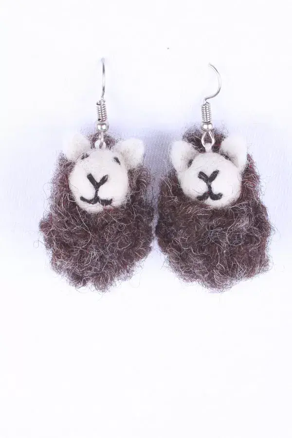 Herdi Sheep Earrings – Feline design, 100% wool, fair trade and handmade in Nepal.