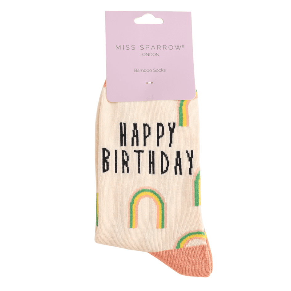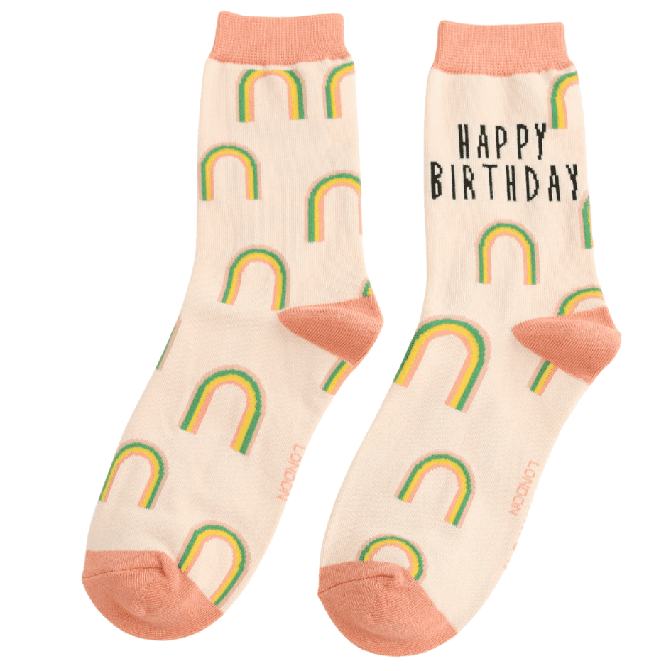 Birthday Rainbows Bamboo Socks Cream Socks Fits Size 3 - 7