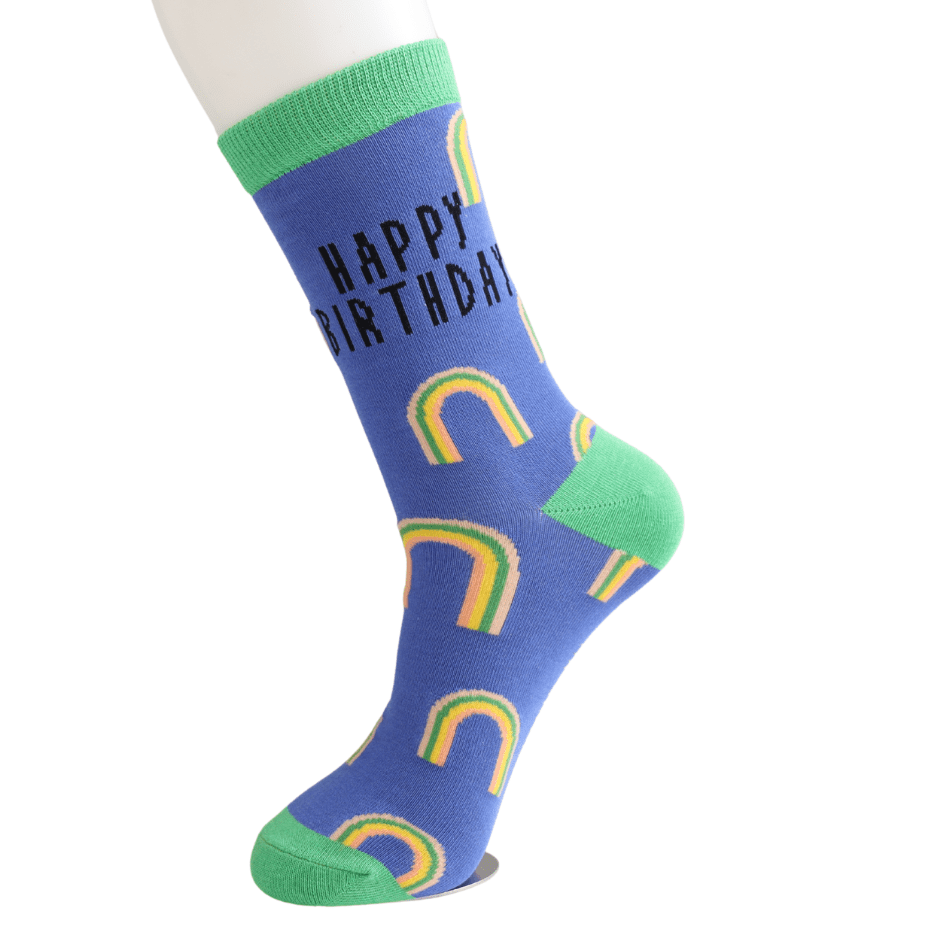 Mr Sparrow Birthday Rainbows Bamboo Socks in Blue Fits Sizes 7 to 11