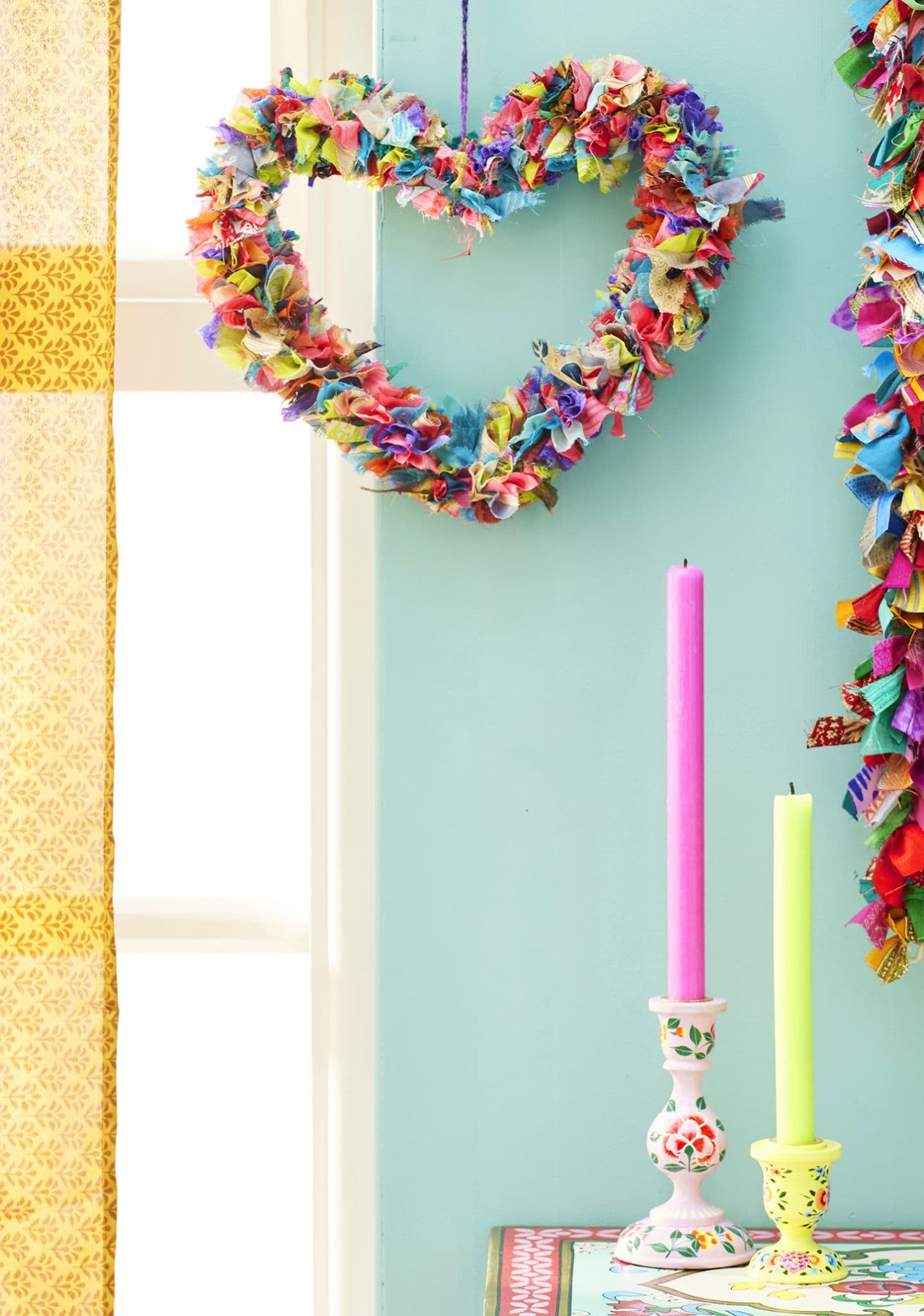 Welcome your guests with warm, cheerful decor that showcases vibrant mixed fabrics, adding charm and modern vibes to your home. A heart wreath is not just for Valentine's!